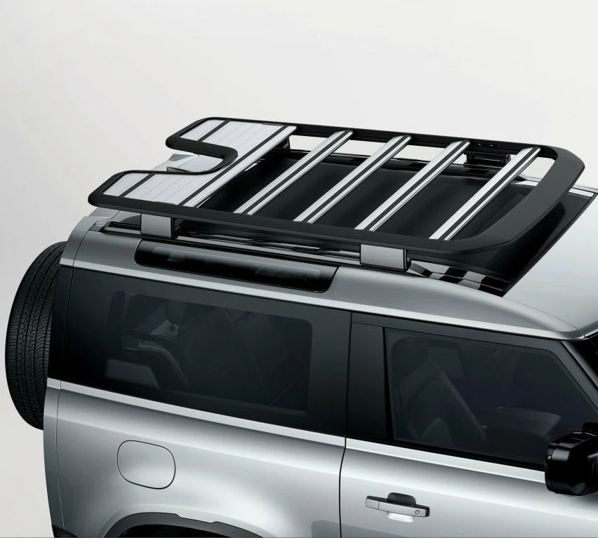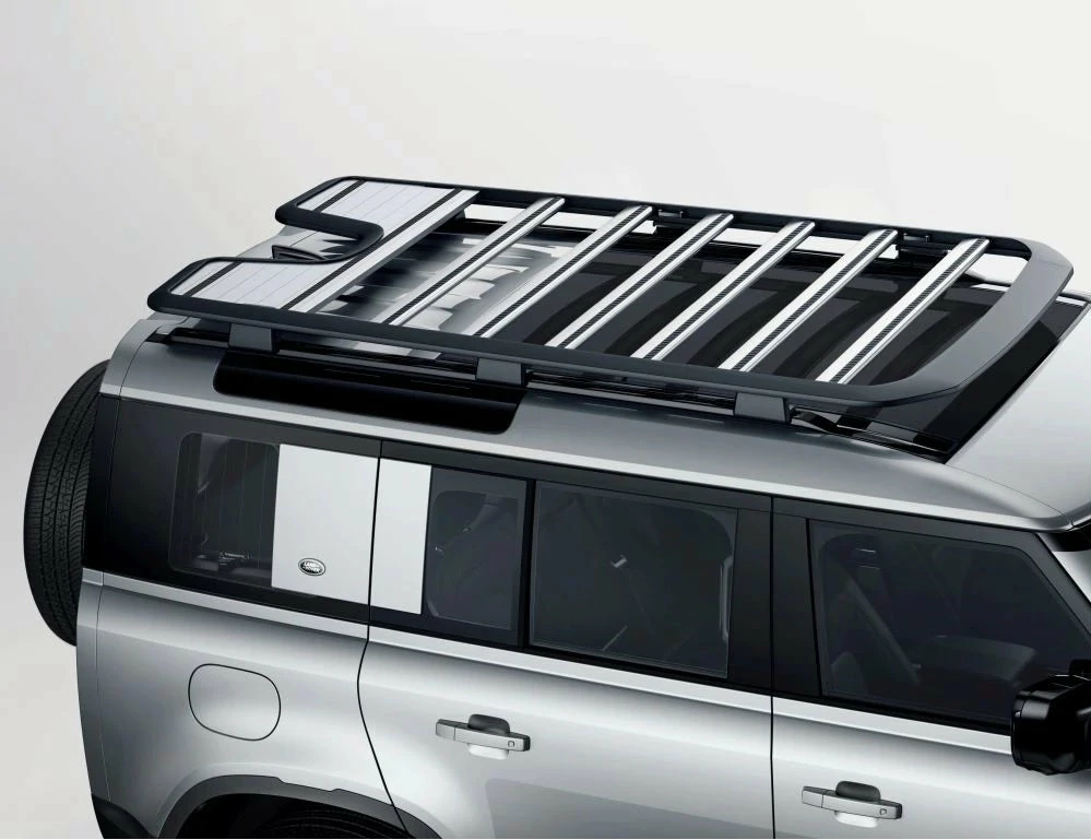 Der Dachträger Expedition – bekannt vom alten Defender – darf auch natürlich beim neuen Defender nicht fehlen. Das flache und leichte Design integriert sich vollständig in das Exterieur des Fahrzeugs und betont die leicht zugängliche Beladungsmöglichkeit.