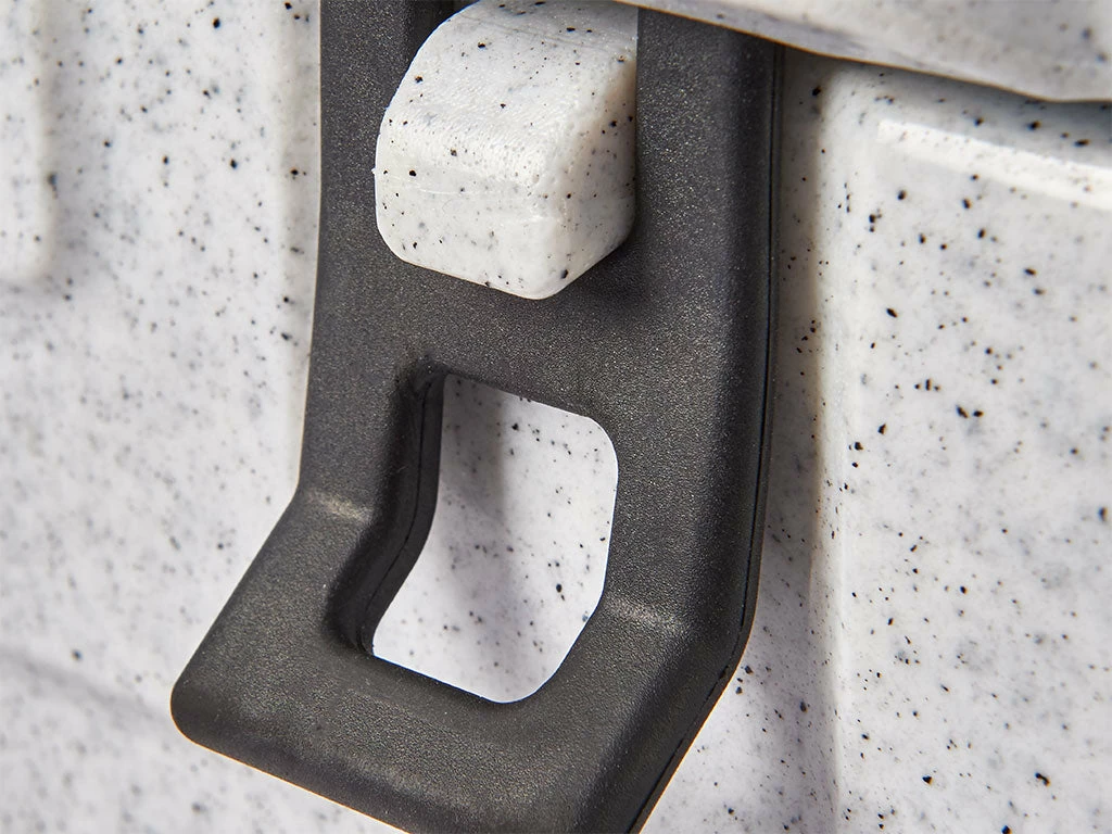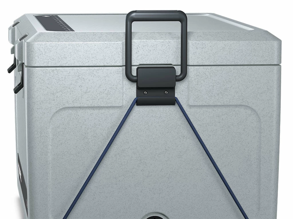 - Strapazierfähige, klappbare Griffe aus Polyethylen dienen als Ankerpunkte zur Sicherung der Kühlbox.