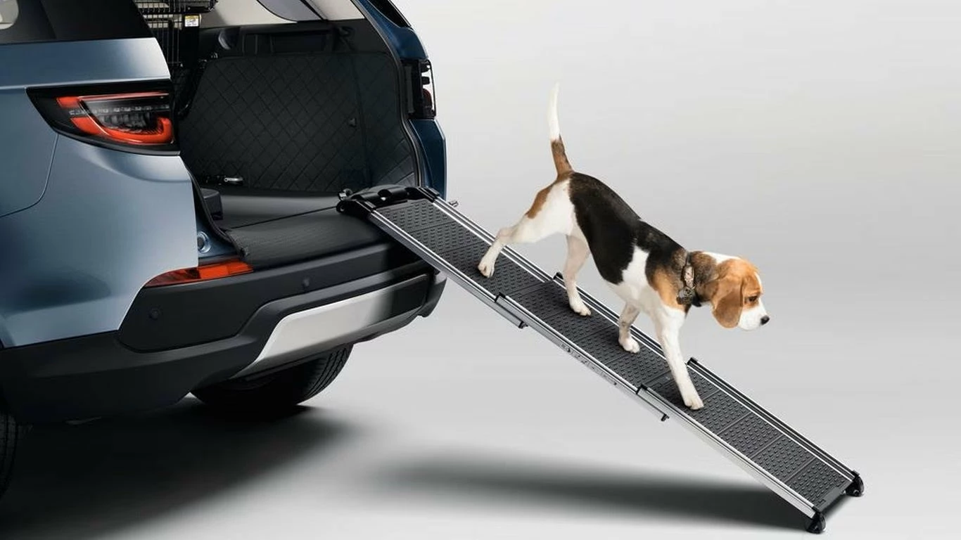 Die Land Rover Haustierrampe verfügt über Aluminium-Seitenwände, einen Kunststoff-Mittelteil mit griffigem Profil sowie Gummifüße für einen sicheren und komfortablen Einstieg des Haustieres in den Gepäckraum. Zusätzlich sichern Haltegurte die Rampe an den „D“-Ösen des Gepäckraums. Für Haustiere bis 85 kg geeignet. Inklusive Transporttasche.