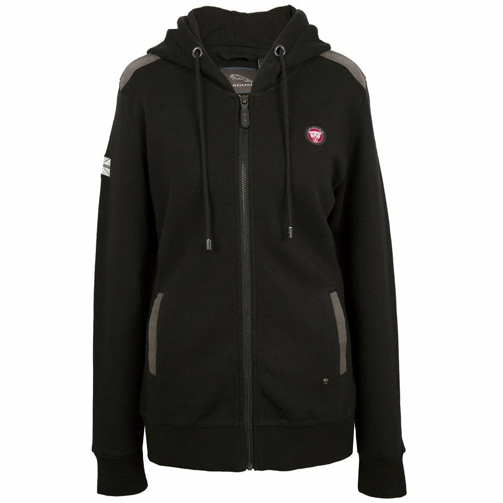 Lässige Kapuzen-Sweatjacke mit Reißverschluss. Kontrastfarbene Details an Kragen und Bündchen sowie Mikrofasereinsätze an Schultern und Seitentaschen. Rotes Growler-Motiv auf der Brust.